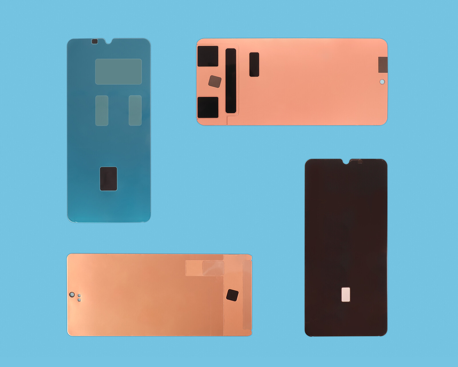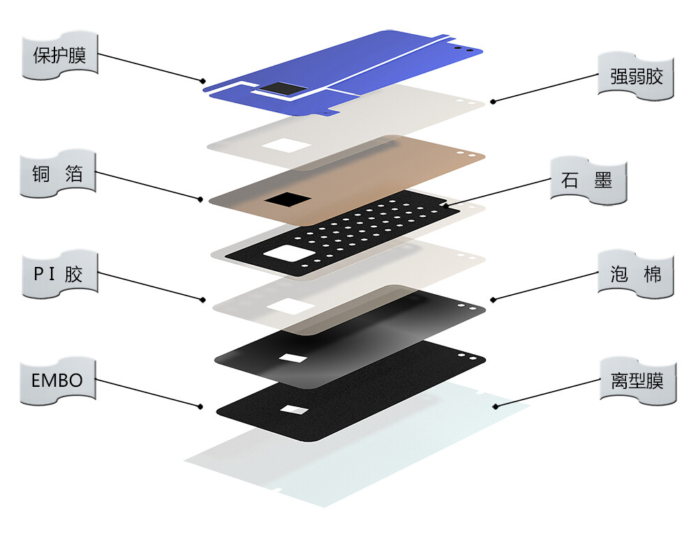 散热石墨片、铜箔、导电/散热膜、导电泡棉,不锈钢等