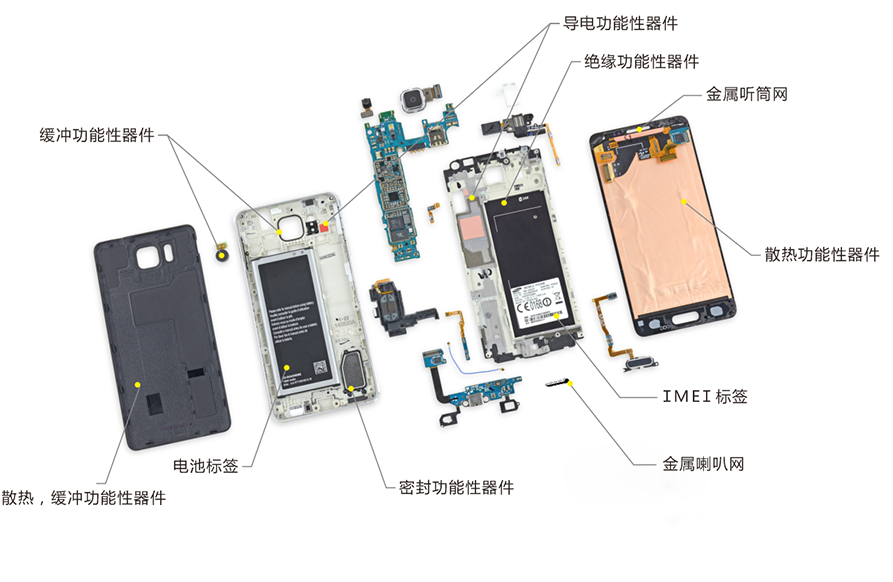 隔离和消除电磁波对其他电子元件产生干扰作用,以控制电场、磁场和电磁波由一个区域对另一个区域的感应和辐射而影响电子元件的正常运作。常见的屏蔽类功能性器件包括导电布、导电胶、导电海绵、金属箔等