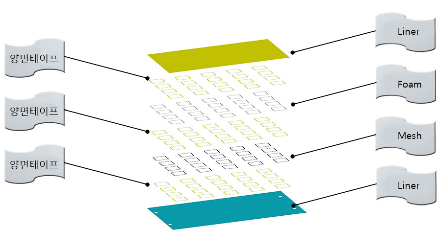 통기성이 뛰어나 Handset이나 speaker 부위에 먼지가 들어가 음질이 흐려지는 것을 막아줍니다.여러 개의 제품이 하나의 Liner에 배열되어 있어,고객의 대량 조립을 용이하게 하여 생산 효율을 높입니다.